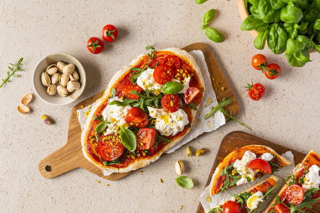 • Pinsa: Durch die Auswahl der Mehle wird der Teig besonders locker und außen knusprig.
